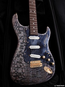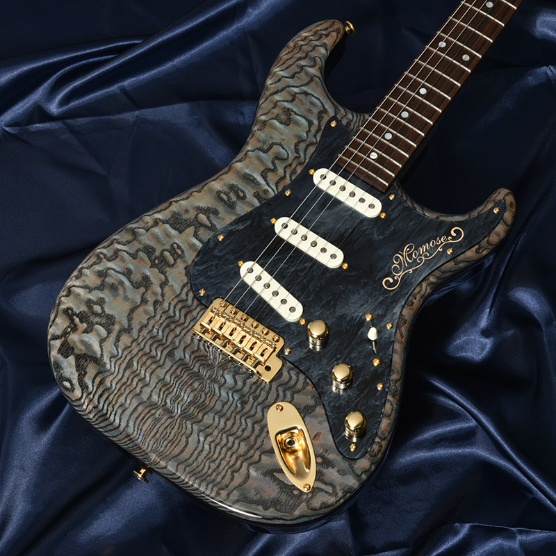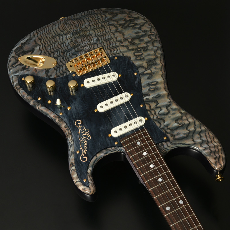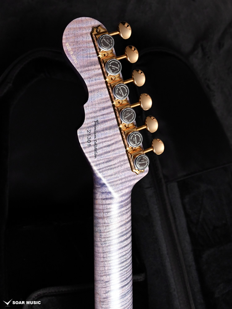 近年のその需要に対して希少性を増している、マダガスカルローズウッドを指板に採用。レギュラー製品では採用を終了しており、本数限定製作のショーモデルだからこそ実現した仕様となります。ネック材のフレイムメイプルは、ヘッドストックの先端までストライプの入ったハイグレードな個体を厳選。芸術的なルックスをぜひその目でお確かめください。