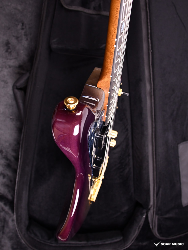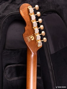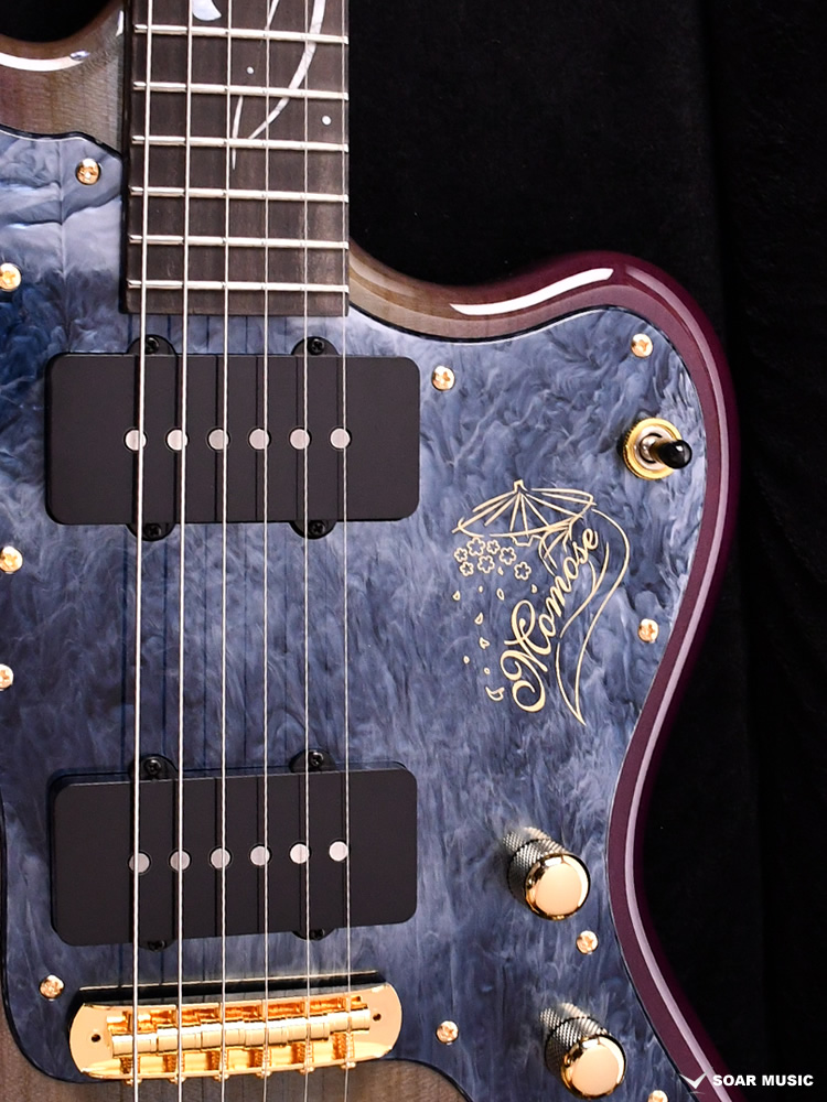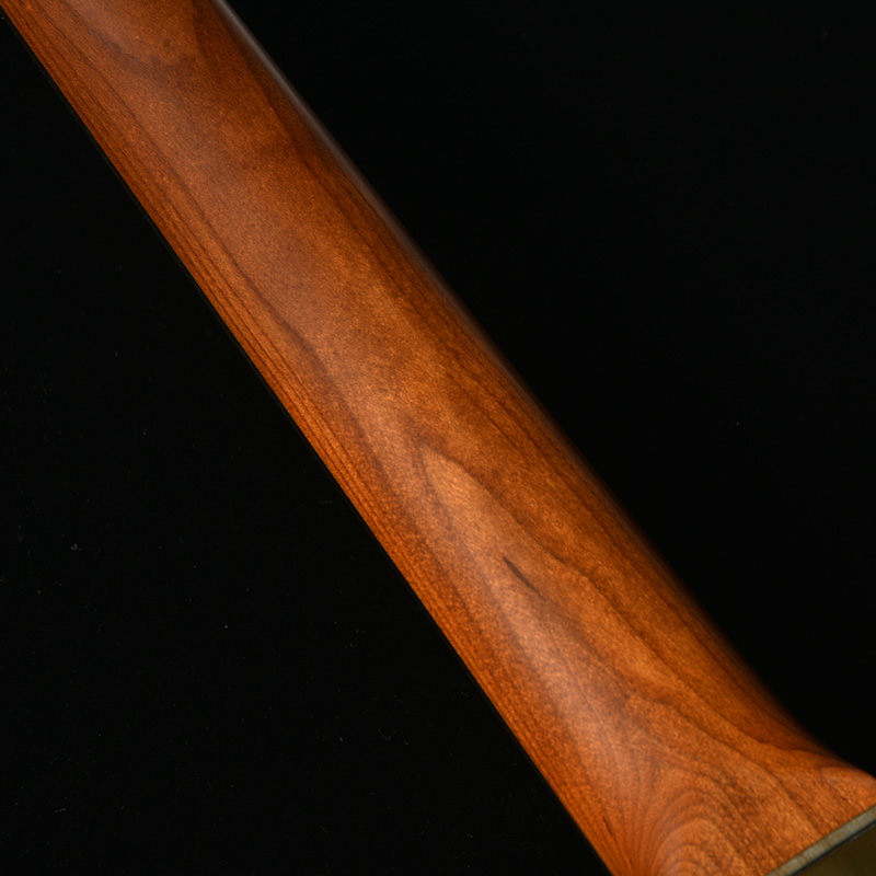 本モデルのボディトップは京都府産の桜材を使用。桜は比較的硬質な材であり、音響面においては煌びやかなサウンドを特徴とします。ボディバックに定番のアルダー材を用いることで、桜材特有のニュアンスを備えつつも、幅広いジャンルでの音作りを可能とします。