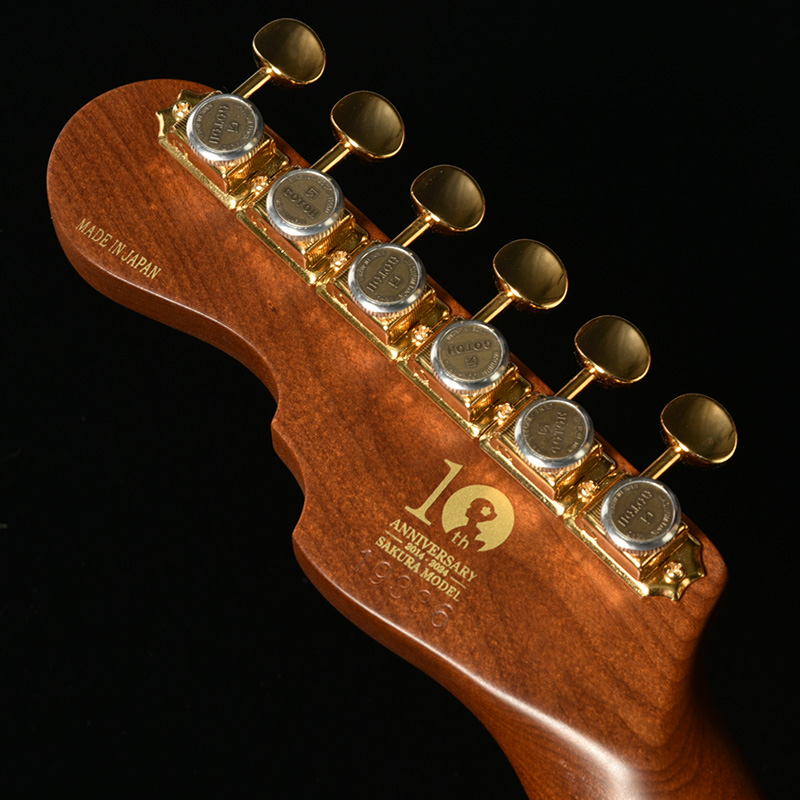 ヘッド裏側には、桜ギター10周年記念モデルであることを証明する限定ロゴがシルクプリントされます。