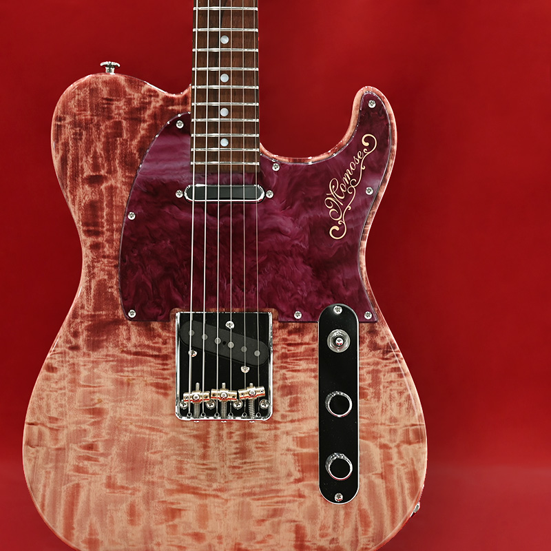“Red Collection”に合わせて製作された本機のカラーリングは、Vintage Wine Redと名付けられました。文字通り年代物のビンテージワインを思わせる、くすみを帯びた味わい深い赤を表現しています。マッチングカラーのアクリルピックガードとの組合せにより、ギター全体を通して美しい赤の表現を目指しました。