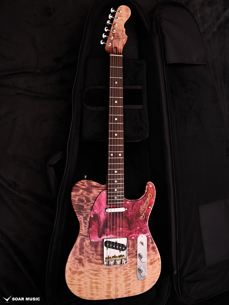 和材として人気の高いトチ材をボディに使用した一本です。トップ材には美しいフレイム杢目を有した個体を選定し、バック材にも同じくトチを採用しています。中〜高音域に特徴のある抜けの良いサウンドを持ち、オーバードライブをかけた際の歪の乗りも非常に良く、その音響特性を発揮して様々なジャンルに対応可能です。