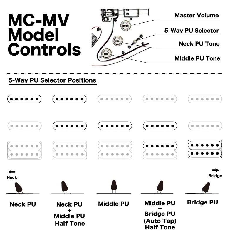 Controls:1Vol,2Tone,5Way PU Selector