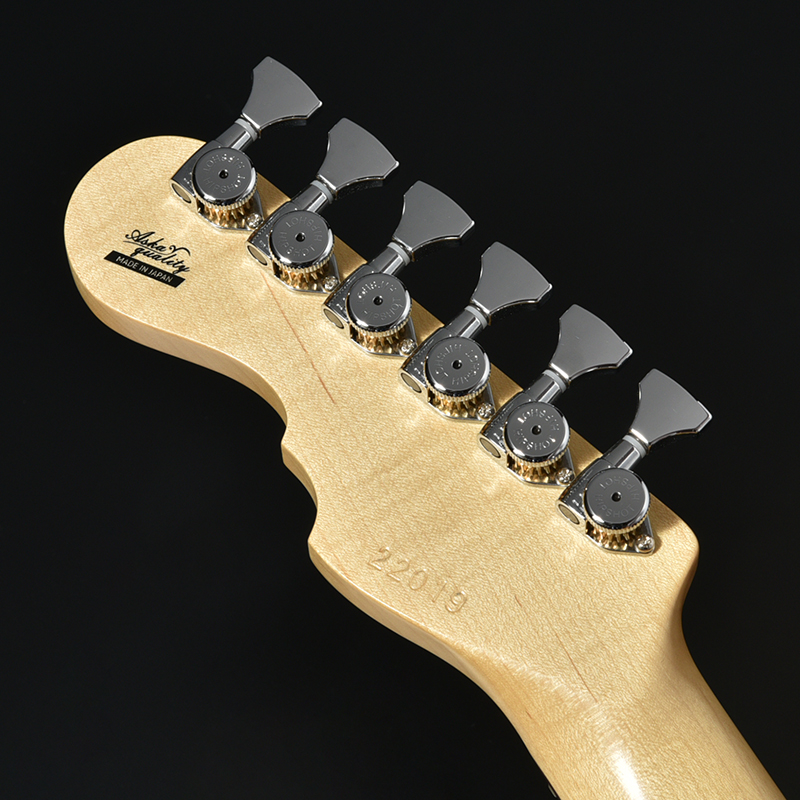 1983年カリフォルニア州で設立されたHipshot社のロックペグを採用。正確に切り出された18:1のギヤとナイロン製ベアリングの組み合わせにより長期間にわたってスムーズな使い心地と正確なチューニングを維持します。搭載ペグはポストの高さが各弦それぞれ異なり、ナットに対して適切なテンションを与えます。この機構によりストリングガイドも不要です。