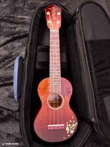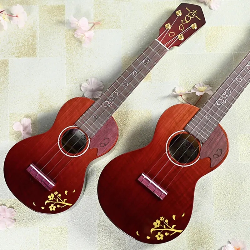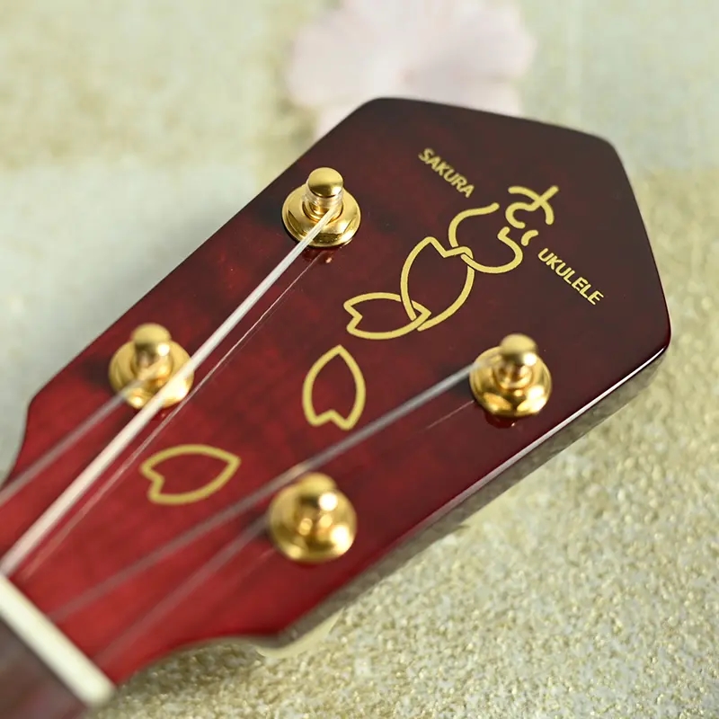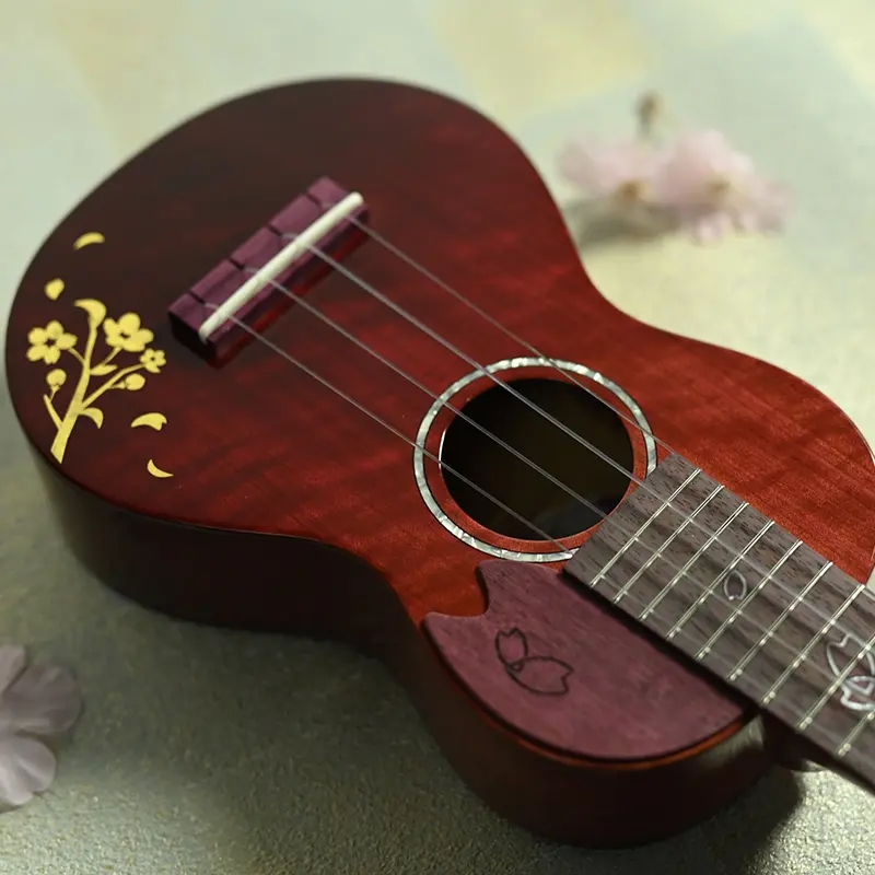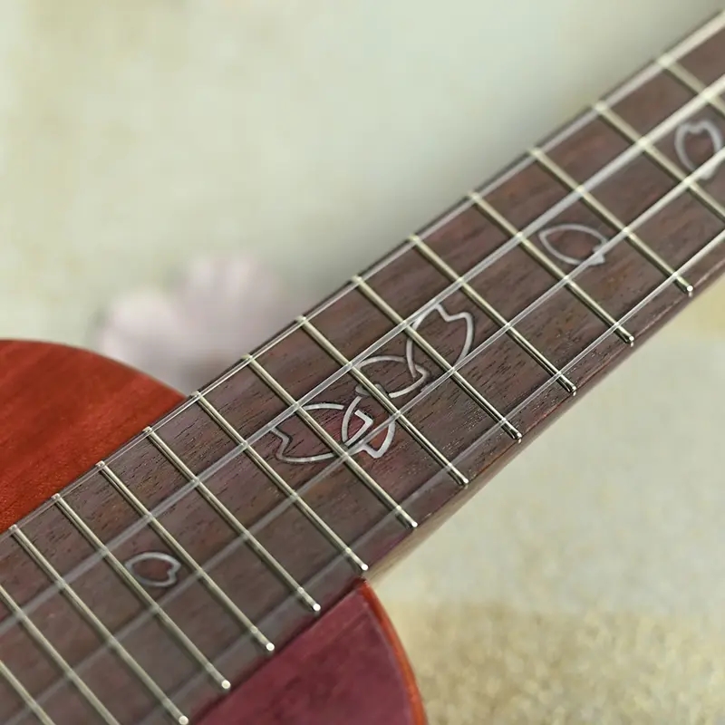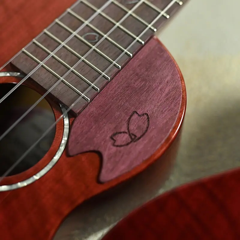ポイントはHeadwayのアコースティックギターでも人気を博したインレイワークを元にSAKURA UKULELE用にデザインし直した「さくらチェーン」のインレイです。