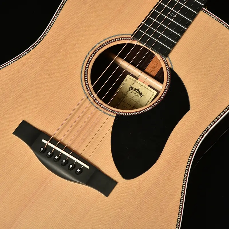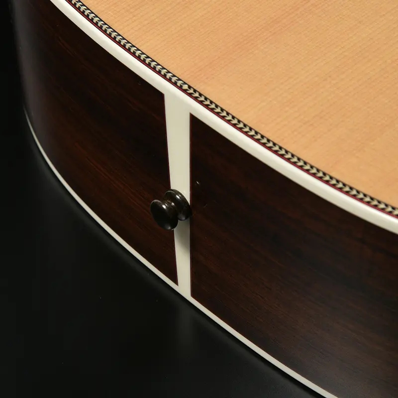 ナット幅を43mmから43.5mmに変更。その僅か0.5mmの差はネックを握った際のフィーリングをさらに向上させ、フィンガースタイルなど多様化する現代のプレイスタイルに自然に馴染みます。 リニューアルに伴い、ヘッドのイーグルインレイも一新。種類の異なる木材を巧みに使用した温かみのある新デザインです。