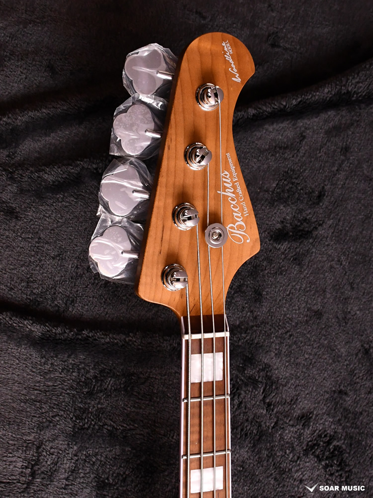 上位機種Bacchus HANDMADE seriesのWOODLINEで搭載しているターボスイッチ。WL4-ASH/RSMでももちろん搭載しています。トーンノブをプルアップするとターボスイッチがオンとなります。2つのシングルピックアップをシリーズ接続し、従来とは一味違う、太くハムバッキング・ピックアップのようなサウンドを作り出します。(※ターボスイッチがオンの時音量はフロントVolノブで調整します。この時リアVolノブはバイパスされます。)