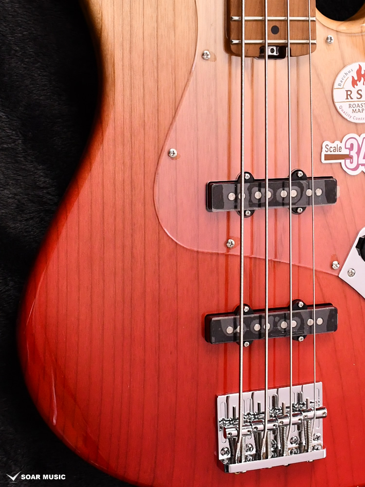 ローステッドメイプルとはメイプルを高温で加熱処理して材の中の水分や油分を揮発させることにより剛性を高めた材。ネックに使用されるとその効果は安定性だけでなくサウンドにも及び、豊かな生鳴りと経年変化したビンテージのようなこなれたトーンを生み出します。高級機種で使われることの多いこの本格派仕様をリーズナブルな価格帯に落とし込んだBacchusの新しい製品ラインナップです。