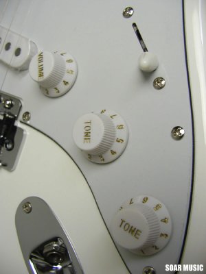 | SPECIFICATION Body:Alder Neck:Maple Finger Board:Rosewood(R) or Maple(M) Scale:25 1/2inch Tuner:Kluson Type Pick Up:Original Single Coil Bridge:Synchronized Trem Control:1Vo,2Tone,5Way P.U Selector Body Finish:Gross Neck Finish:Mat ・各部詳細 |