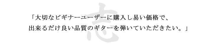 | ・ビギナープレイヤーに向けたベーシックかつシンプルな仕様で最初の1本にお勧め。 ・限られたコスト内でも可能な限り楽器としての品質を追求した優れたコストパフォーマンス。 これから色々知識を深め、ギター/ベースプレイを楽しんでいただくビギナーの方々の最初の1本として。 |